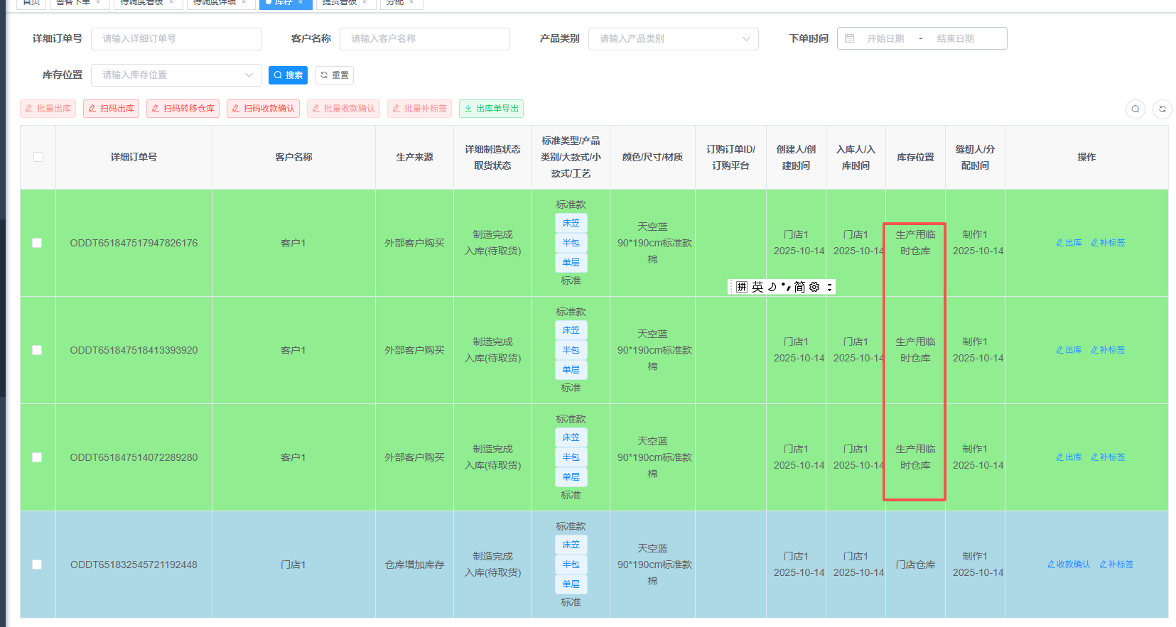结果,分配好后,这批货的库存位置 改到了 生产临时仓库